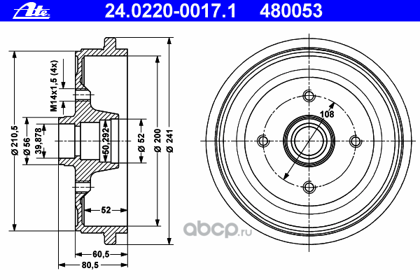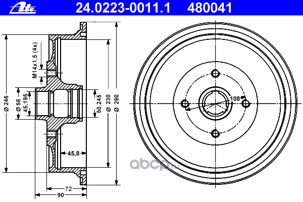 | Ate | 24022280111 | Тормозной барабан | ||