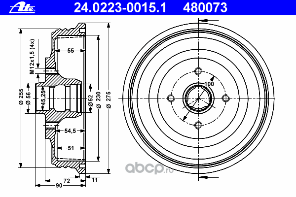 | Ate | 24022300151 | Тормозной барабан | ||