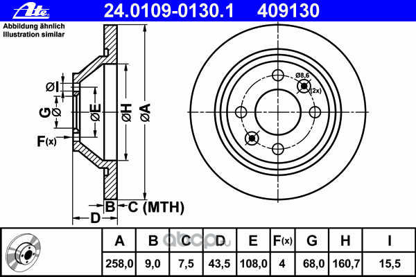 | Ate | 24010901301 | Тормозной диск | ||