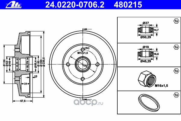 | Ate | 24022007062 | Тормозной барабан | ||