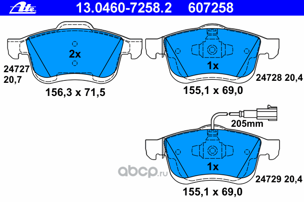 | Ate | 13046072582 | Комплект тормозных колодок, дисковый тормоз | ||