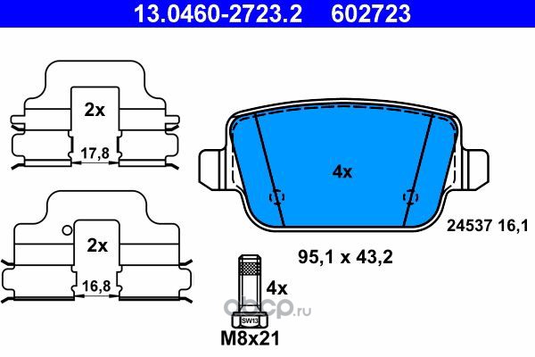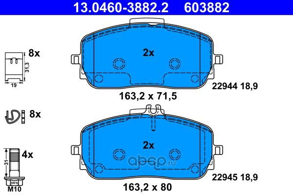 | Ate | 13046038822 | Комплект тормозных колодок | ||