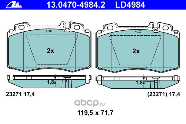| Ate | 13046027582 | Комплект тормозных колодок | ||