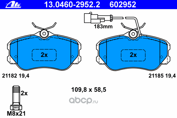 | Ate | 13046059512 | Комплект тормозных колодок | ||