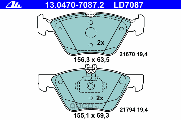 | Ate | 13047070872 | Комплект тормозных колодок | ||