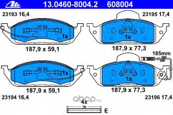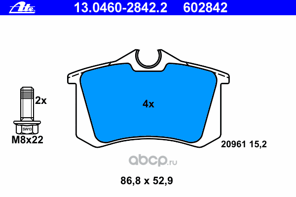 | Ate | 13046028422 | Комплект тормозных колодок | ||