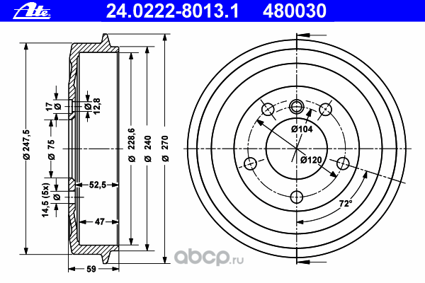 | Ate | 24022280131 | Тормозной барабан | ||