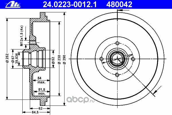 | Ate | 24022300121 | Тормозной барабан | ||