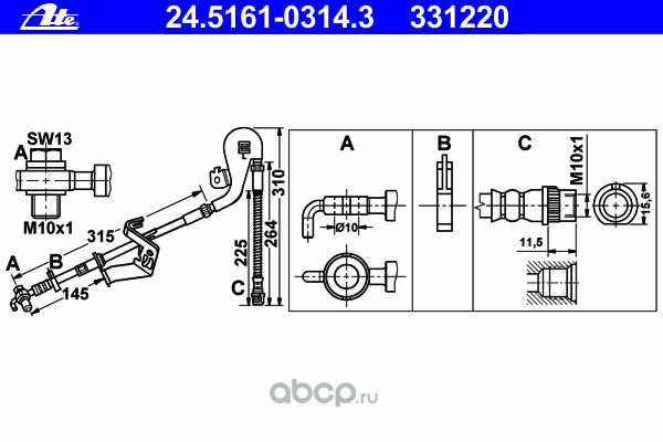 | Ate | 24516103143 | Тормозной шланг | ||