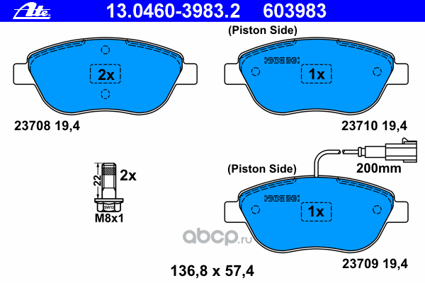 | Ate | 03013703152 | Комплект тормозных колодок | ||