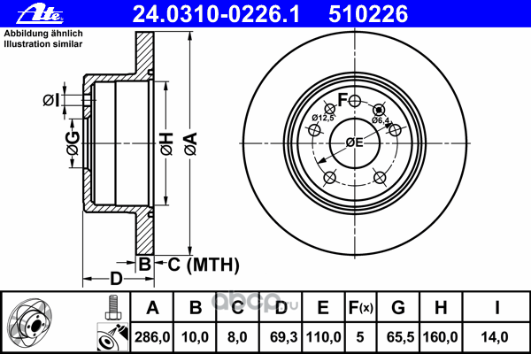 | Ate | 24031002261 | Тормозной диск | ||