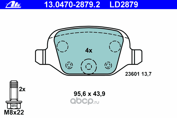 | Ate | 13046049922 | Комплект тормозных колодок |