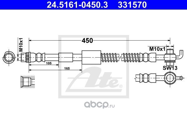 | Ate | 24516104513 | Тормозной шланг | ||