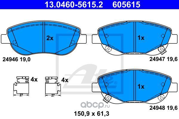 | Ate | 13046056152 | Комплект тормозных колодок | ||