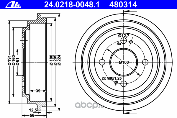 | Ate | 24021800481 | Тормозной барабан | ||
