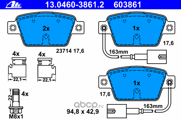 | Ate | 13046038642 | Тормозные колодки | ||