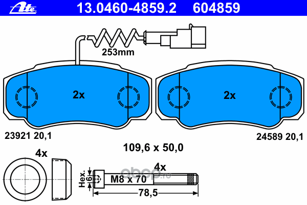 | Ate | 13046048602 | Комплект тормозных колодок | ||