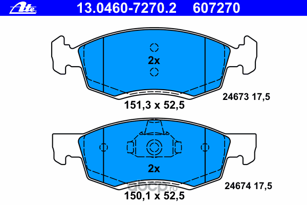 | Ate | 13046072702 | Комплект тормозных колодок | ||