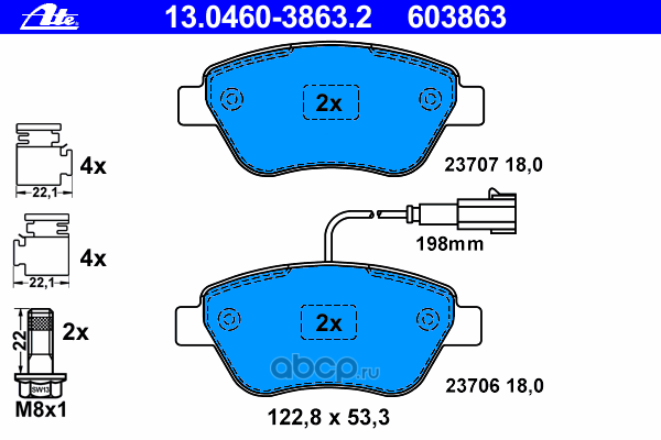 | Ate | 13046038632 | Комплект тормозных колодок | ||