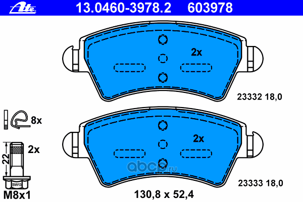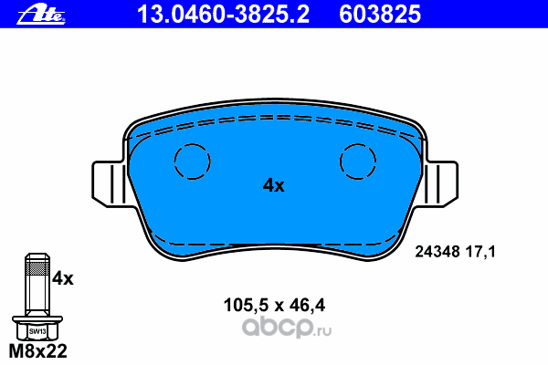 | Ate | 13046038252 | Комплект тормозных колодок | ||