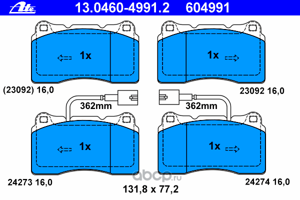 | Ate | 13046049892 | Комплект тормозных колодок | ||