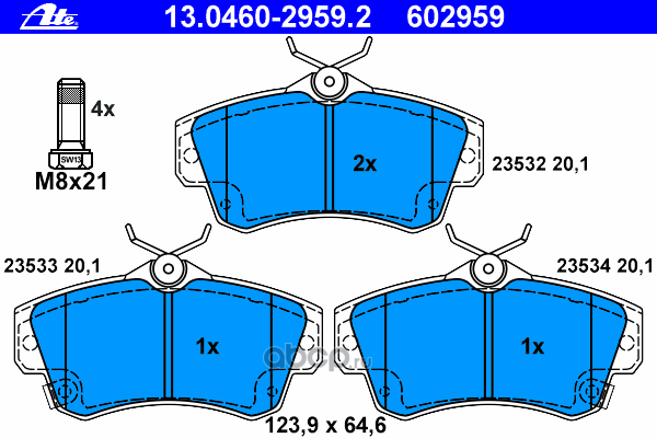 | Ate | 13046028902 | Комплект тормозных колодок | ||