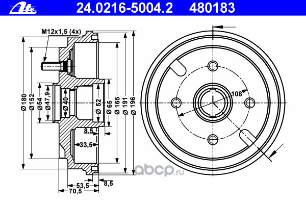 | Ate | 24021650042 | Тормозной барабан | ||