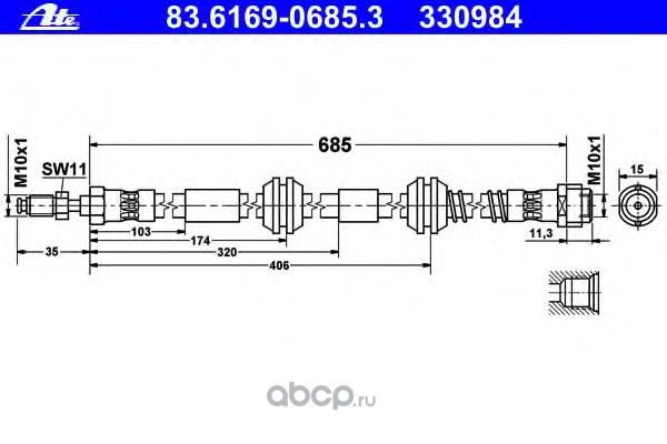 | Ate | 83616906853 | Тормозной шланг | ||
