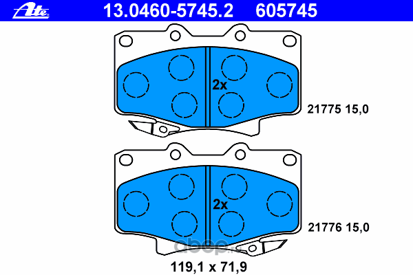 | Ate | 03013702272 | Комплект тормозных колодок |