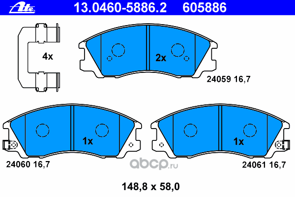 | Ate | 13046058862 | Комплект тормозных колодок | ||