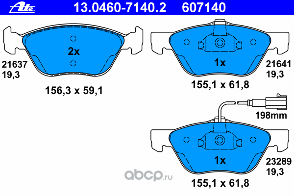 | Ate | 13046071612 | Комплект тормозных колодок | ||