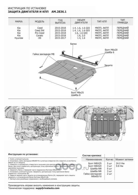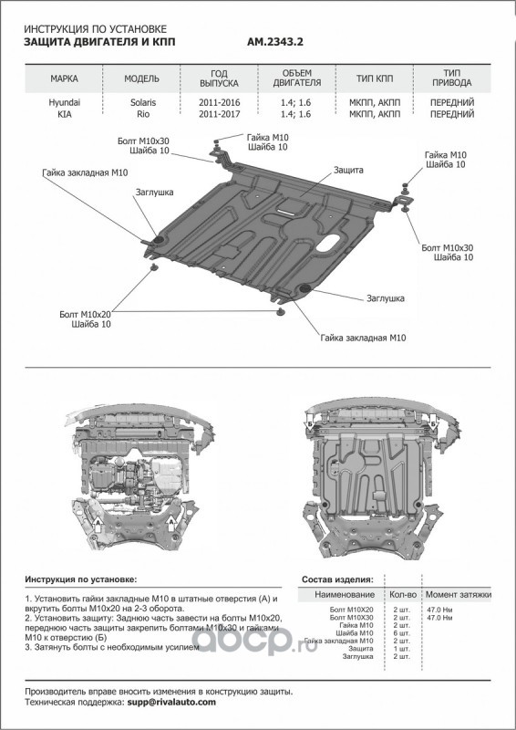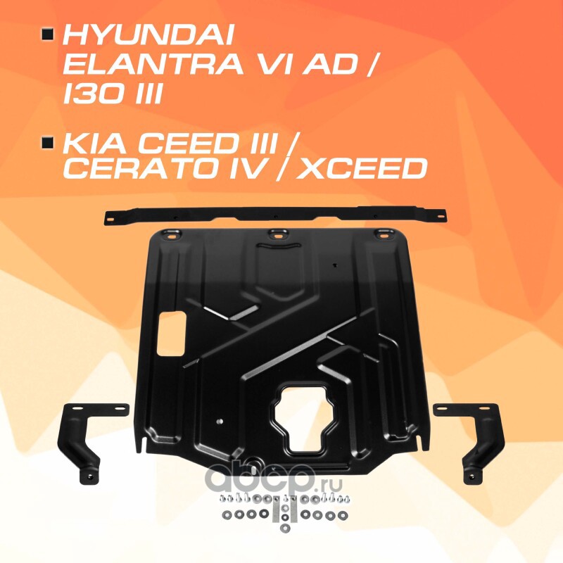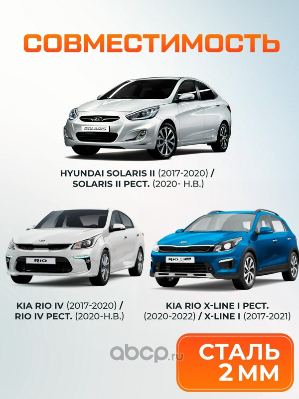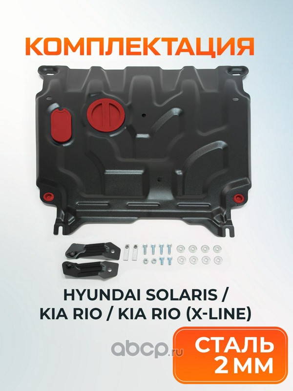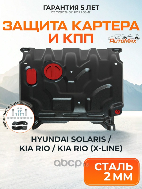 AutoMax AM23691 Защита картера и КПП  для Hyundai Solaris II 2017-2020 (вкл. рест 2020 - н.в.)/KIA RIO IV 2017-2020 (вкл. рест 2020 - н.в.)/RIO X-Line 2017-2021 (вкл. Рест 2020-2022), сталь, с крепежом, штамп