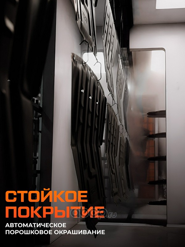 Компания производит стальные защиты нижних частей автомобиля, порог-площадки, накладки на пороги и багажник из нержавеющей стали, молдинги на двери, накладки на ковролин, коврики салона.