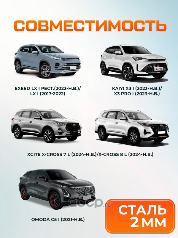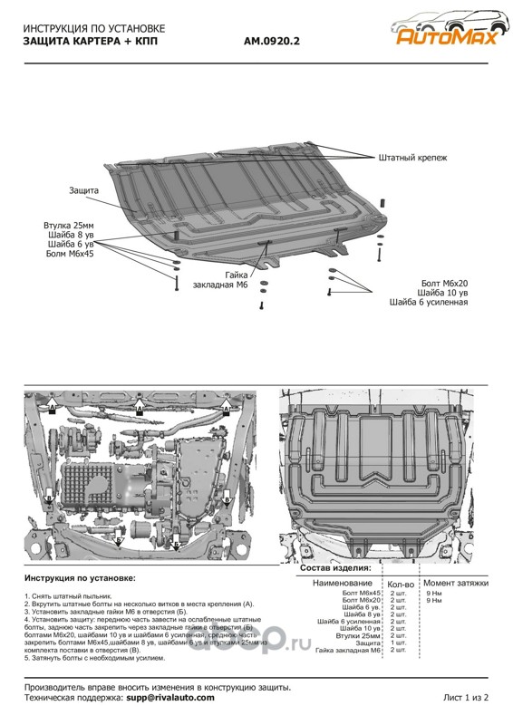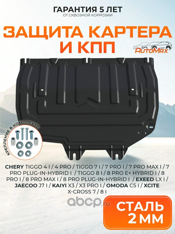 AutoMax AM09202 Защита картера и КПП для Chery Tiggo/EXEED LX/Omoda C5/C7/Kaiyi X3/X3 Pro/Xcite X-Cross 7/Jaecoo J7, сталь, с крепежом