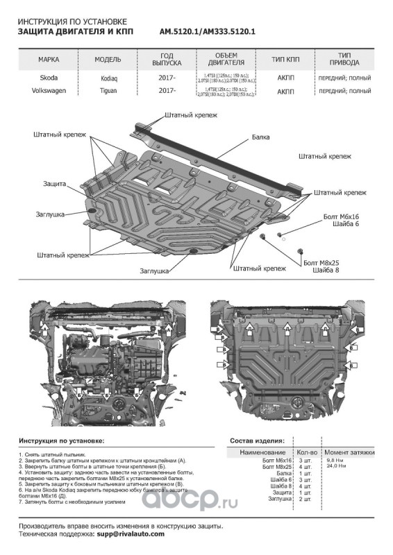 | AutoMax | AM33351201 | ЗК+КПП Skoda Kodiaq 17-/VW Tiguan 16-, al 2.5mm | ||