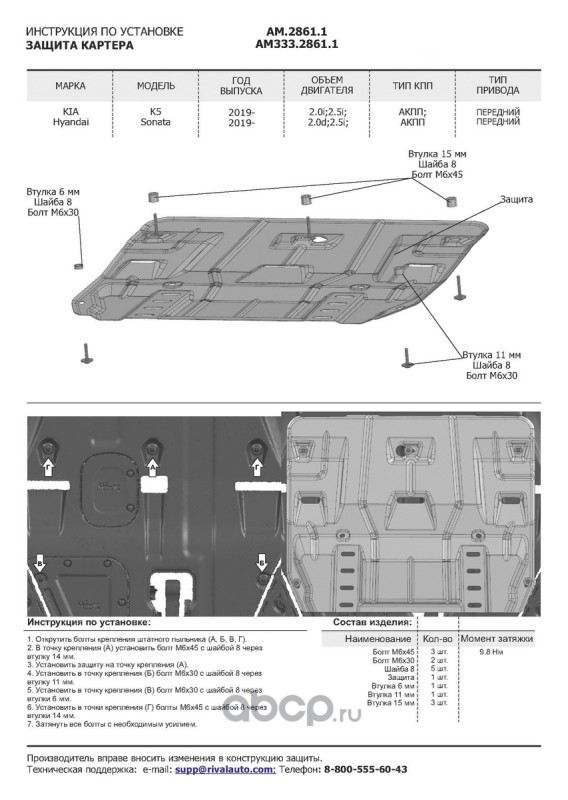 ЗК+КПП Hyundai Sonata 2019-/Kia K5 2020-, st 1.5mm