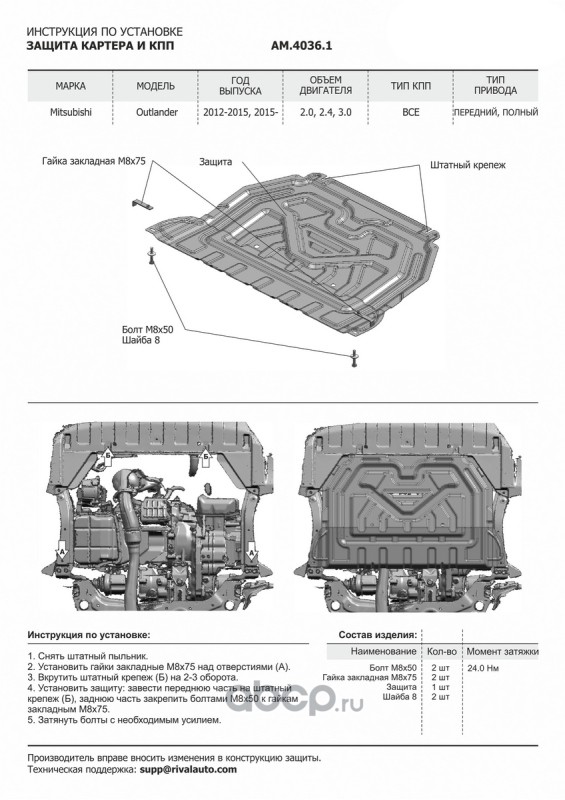 ЗК+КПП Mitsubishi Outlander 12- AM.4036.2