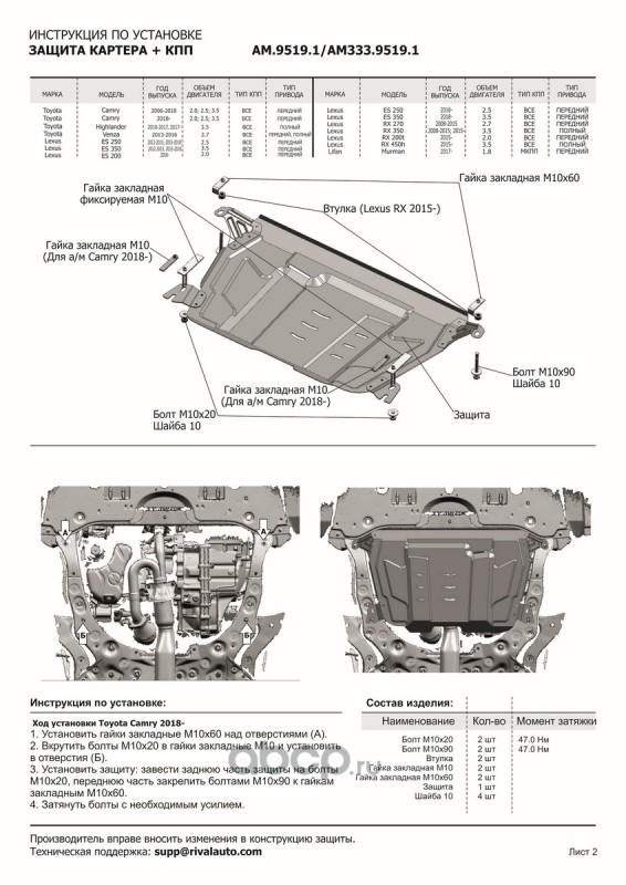ЗК+КПП Lexus ES/RX/Lifan Murman/Toyota Camry/Venza