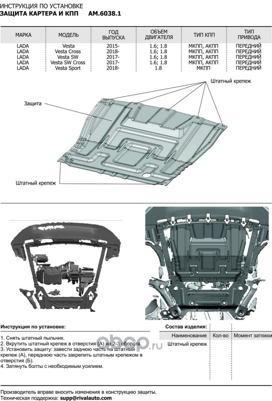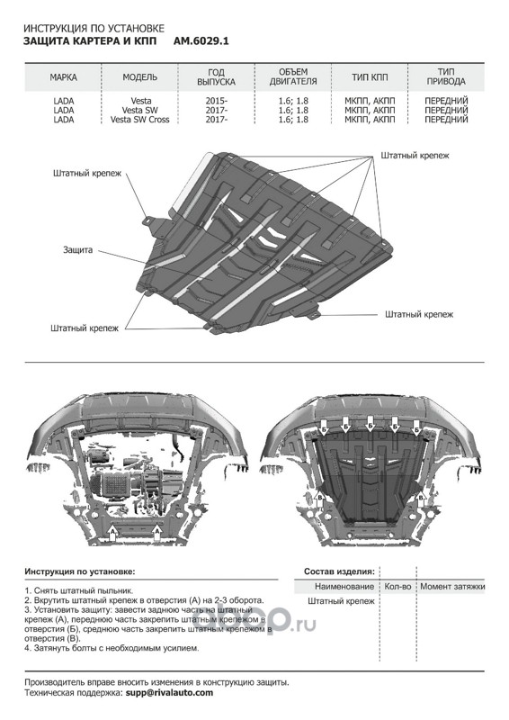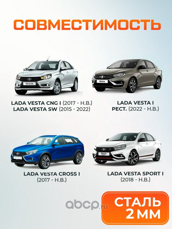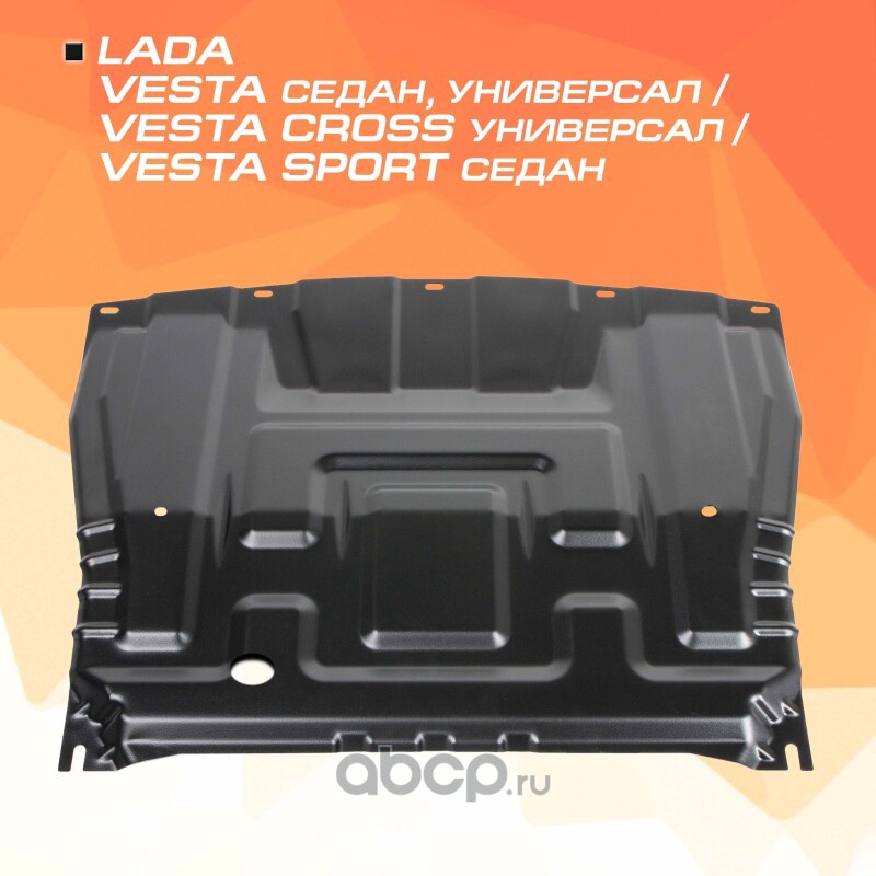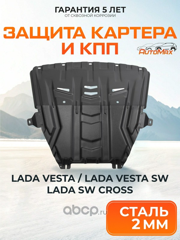 Защита картера и КПП для Lada (ВАЗ) Vesta SW, SE 2015-2022/Vesta I рестайлинг SW, SE 2022-н.в./Vesta Cross SW, SE 2017-н.в./Vesta Cross I рестайлинг SW, SE 2022-н.в., сталь, с крепежом, штамп