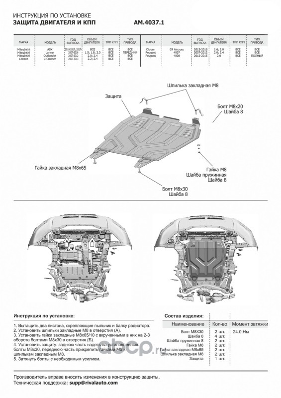 ЗК+КПП Citr. C4 Aircross/C-Crosser/Mits.ASX/Lancer