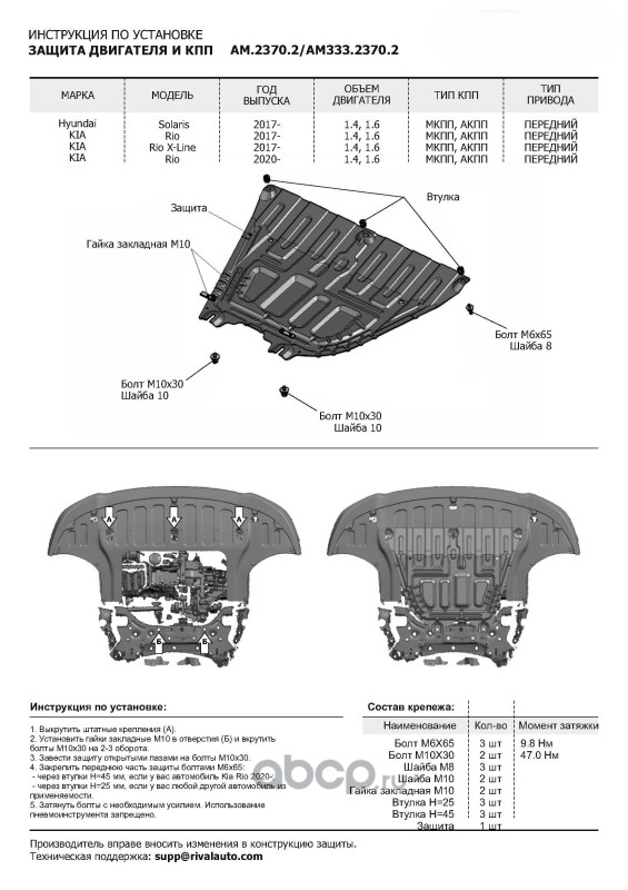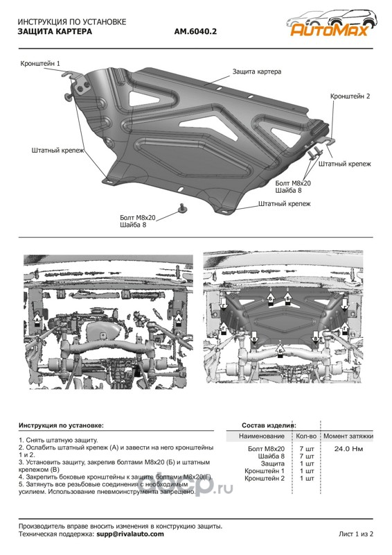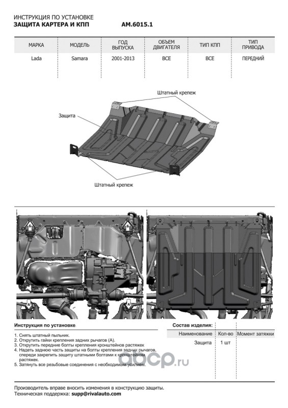 Защита картера и КПП, сталь 1.5 мм, с крепежом, штампованная