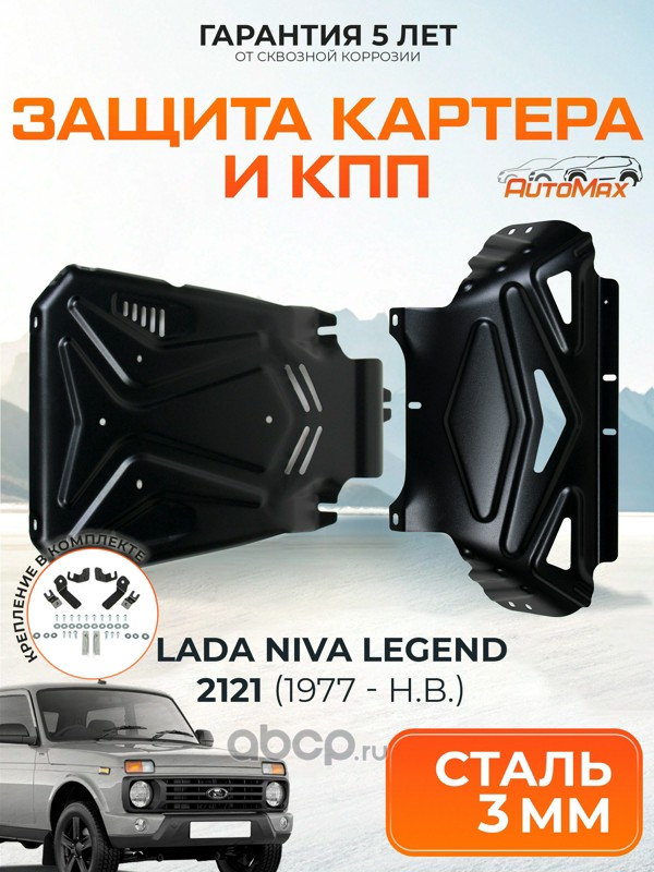 Защита картера и КПП для Lada (ВАЗ) Niva 2121 1977-2019/2121 I рестайлинг 2019-2021/Niva 2131 1993-2019/2131 I рестайлинг 2019-2021, Сталь, с крепежом