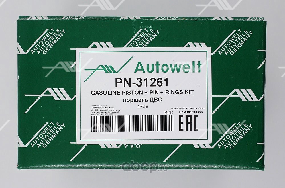 | Autowelt | PN31261 | поршень с кольцами 0.50 | ||