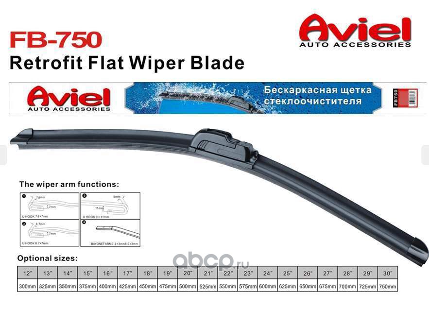 | Aviel | FB75013 | Щетка стеклоочистителя Aviel FB750. В комплекте 2 переходника (адаптера). | ||