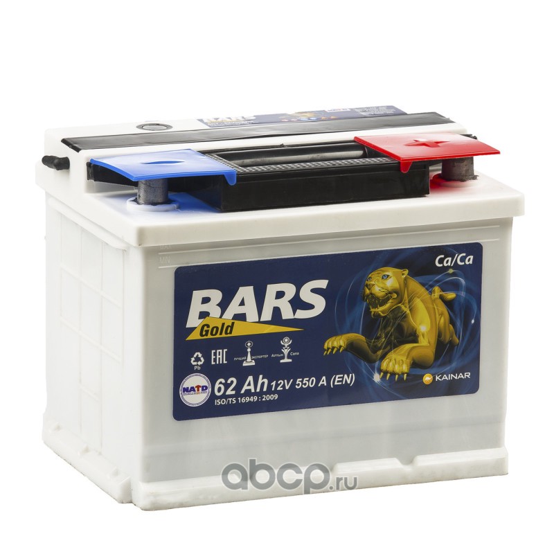| BARS | 6СТ62VL0 | Батарея аккумуляторная 62А/ч 550А обратная полярн. стандартные (Европа) клеммы | ||