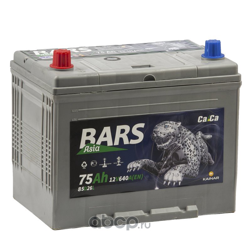 | BARS | 85D26R | Батарея аккумуляторная 75А/ч 640А прямая полярн. выносные (Азия) клеммы | ||