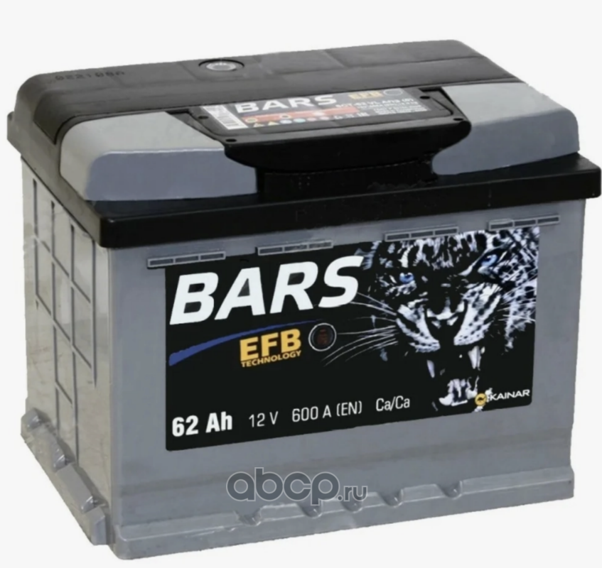 | BARS | 6СТ62 | Батарея аккумуляторная 62А/ч 600А обратная полярн. стандартные (Европа) клеммы | ||