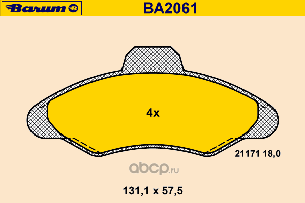 | BARUM | BA2061 | Комплект тормозных колодок, дисковый тормоз | ||