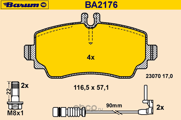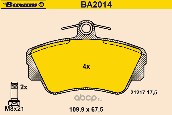 | BARUM | BA2176 | Комплект тормозных колодок, дисковый тормоз | ||