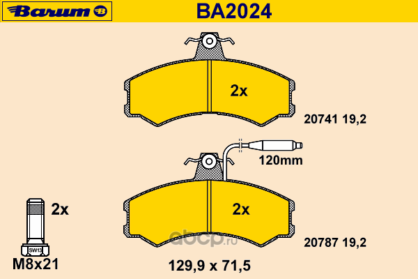 | BARUM | BA2024 | Комплект тормозных колодок, дисковый тормоз | ||